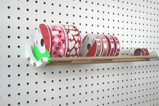 Tape and ribbon organizer for pegboard - end cap bracket. Stop your rolls from falling over (set of 2)