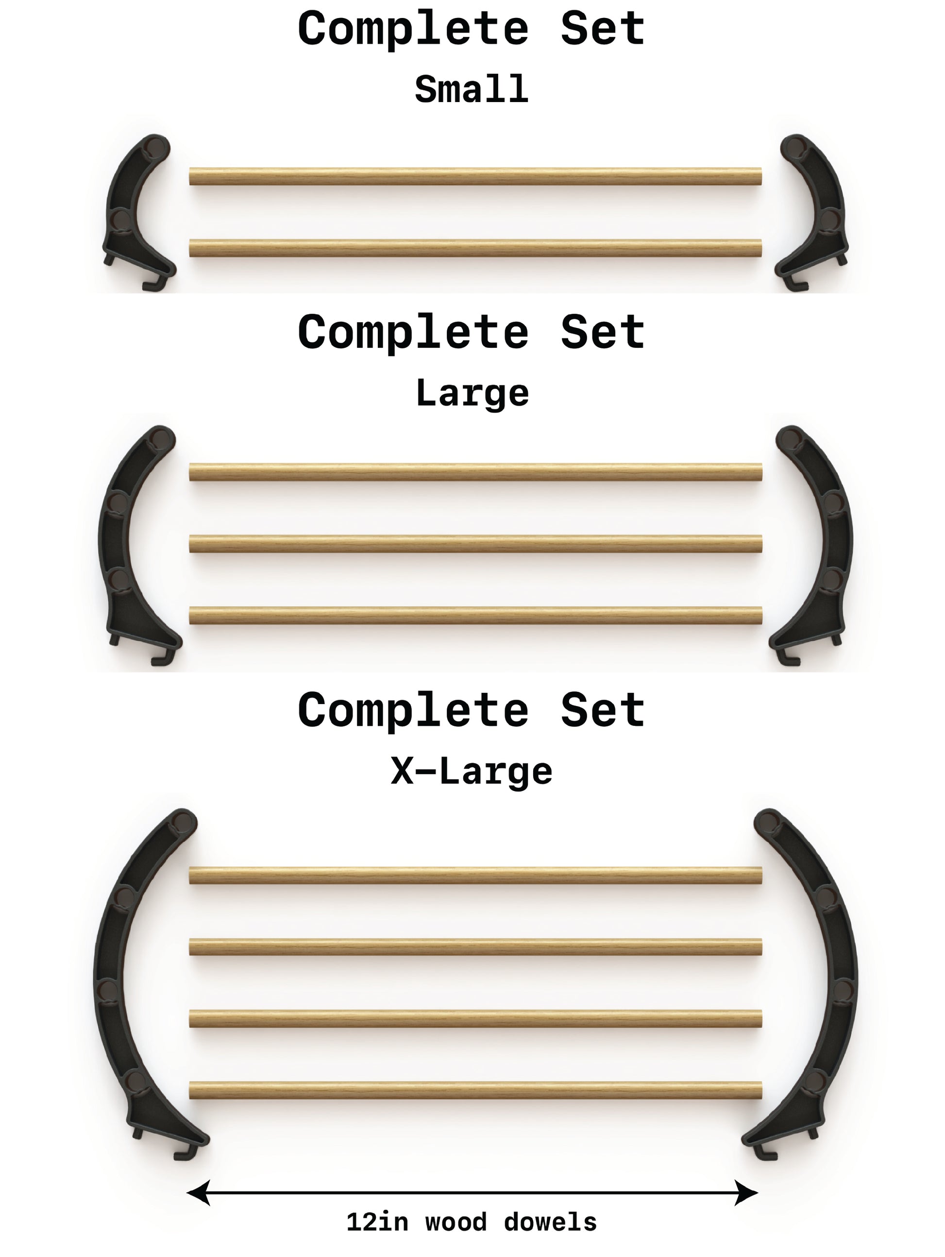 - three (3) 12in wood dowels